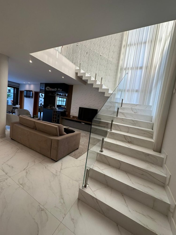 - Escada em porcelanato e guarda corpo em vidro.