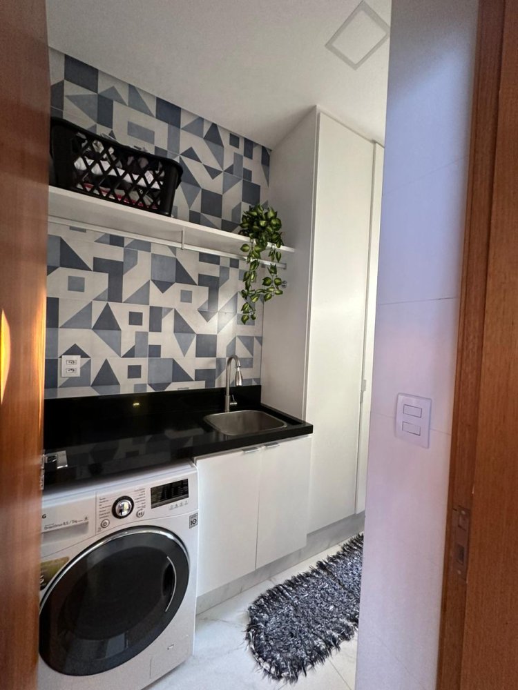- Lavanderia equipada com espaço de corredor aberto para varal e outros equipamentos.