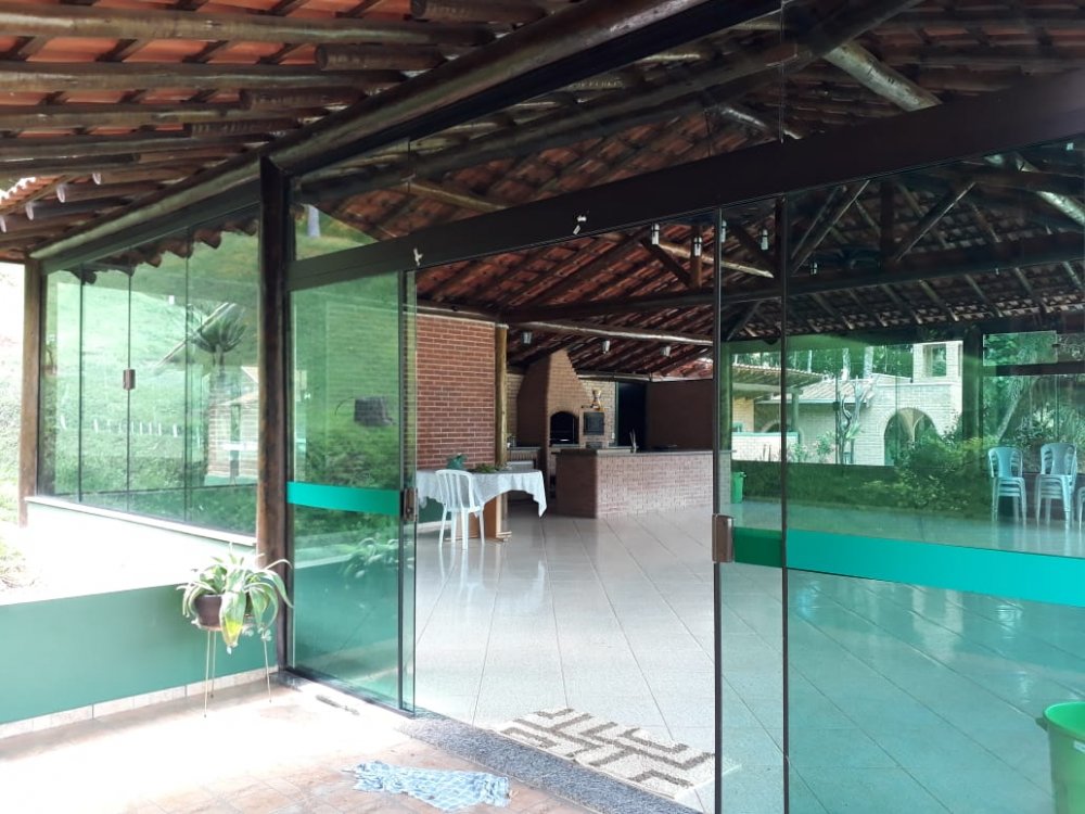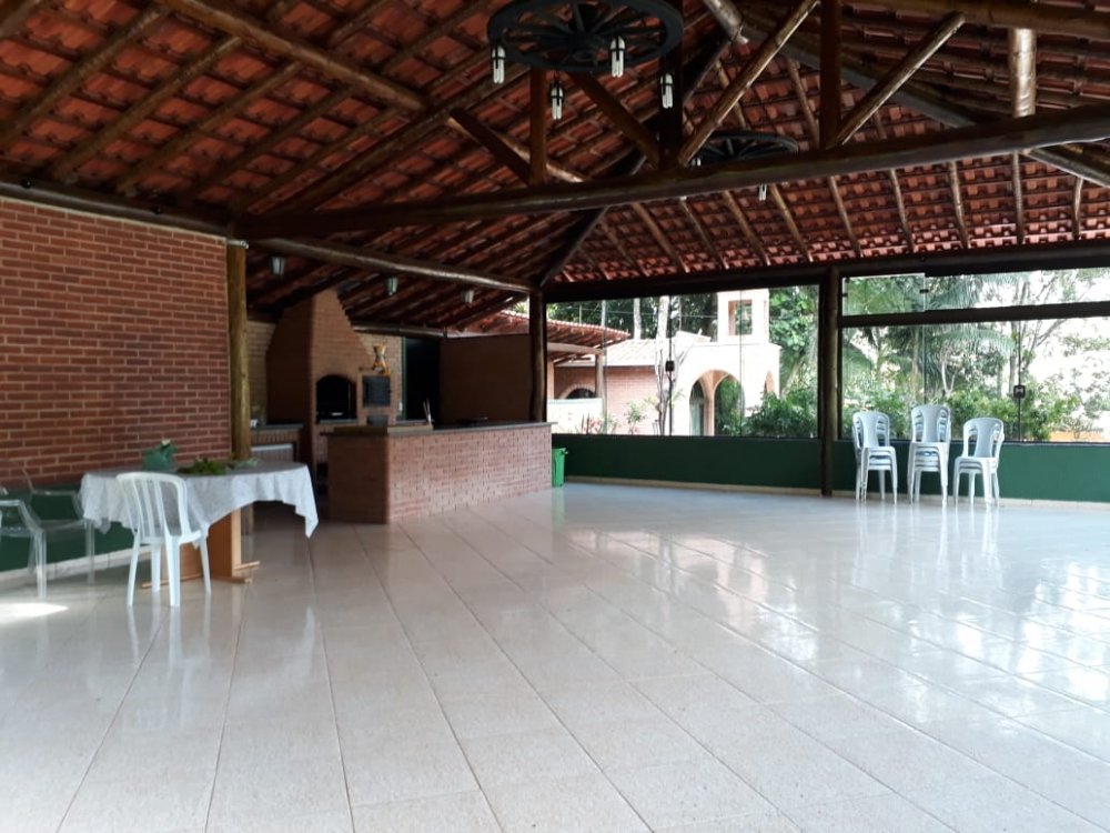 Casa sede toda avarandada com 3 dormitórios, sendo 1 suite com Hidromassagem, com ármarios e camas, banheiro socal, sala 2 ambientes, cozinha, área de serviço, salão de jogos com bar e churrasqueira conjugados e equipados, conta tambem com uma área para dispensa da chácara.